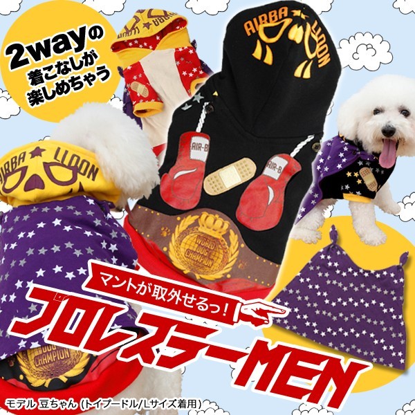 Air Balloon プロレスラーMEN パーカー 3L ベージュ・ブラック 中型犬用 犬服 柴犬等